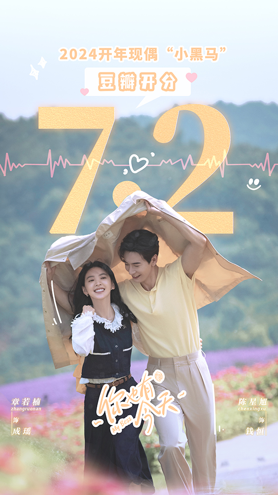 《你也有今天》自上线以来热度稳步走高,开播后优酷站内斩获热度榜、热搜榜、上新榜、女性爱看电视剧热度榜等榜单TOP1,热度值最高突破9504,站外连续多日登猫眼网络剧热度榜、猫眼网络剧有效播放榜TOP1,灯塔网剧正片播放市占排行实时TOP1,云合评级S+级,取得不俗的成绩。随着热度的飙升,《你也有今天》的口碑也是一路高涨,豆瓣开分7.2的佳绩,让剧集成功出圈,一跃成为2024开年现偶“小黑马”。