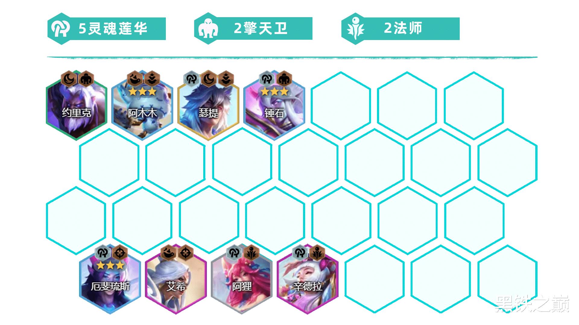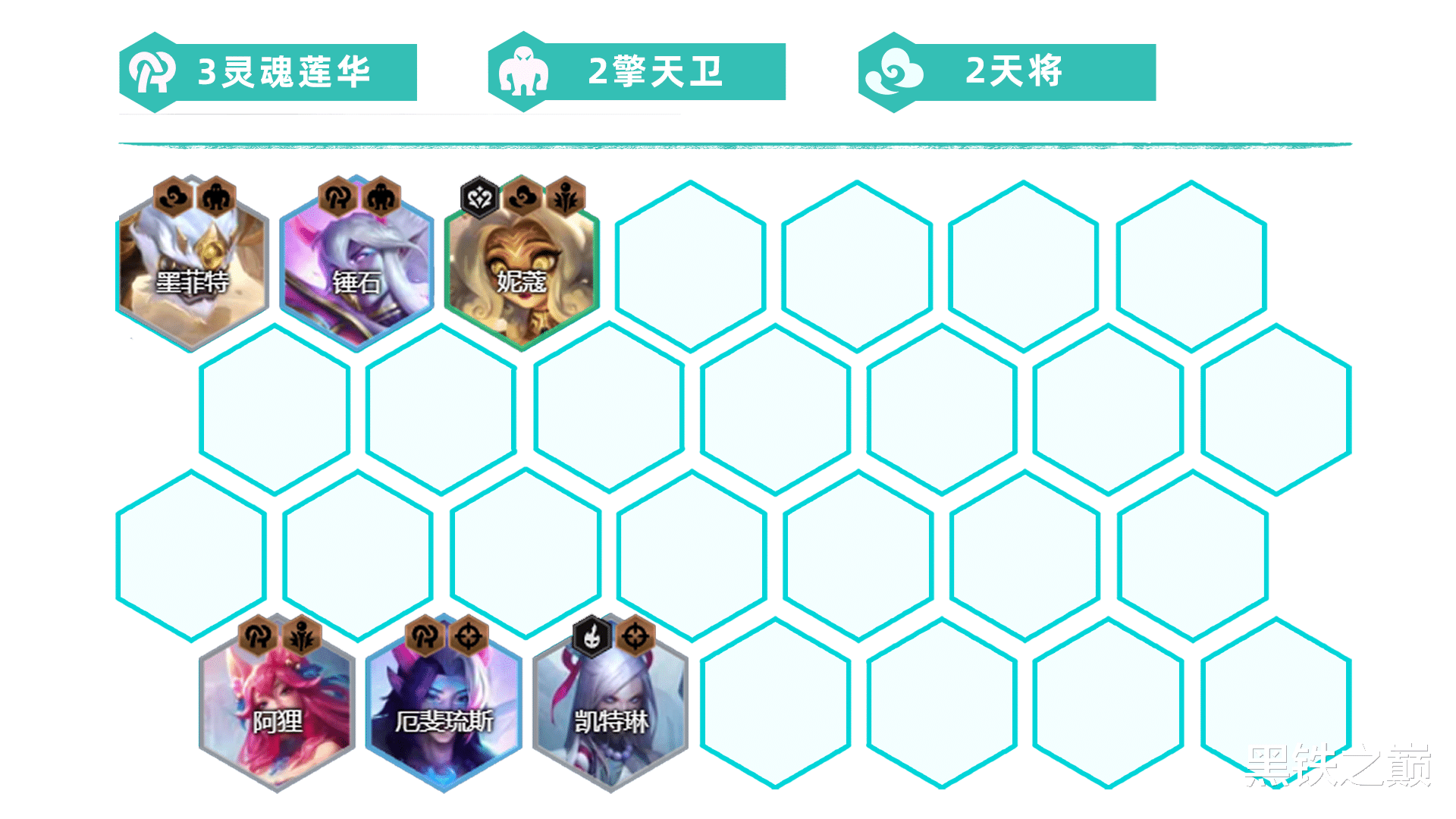 羁绊组成:3灵魂莲华、2擎天卫、2天将、2狙神