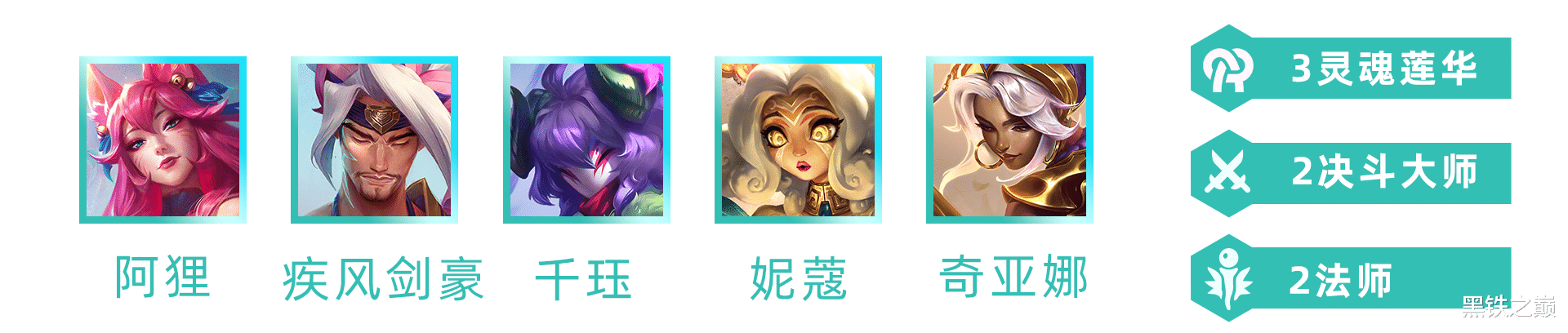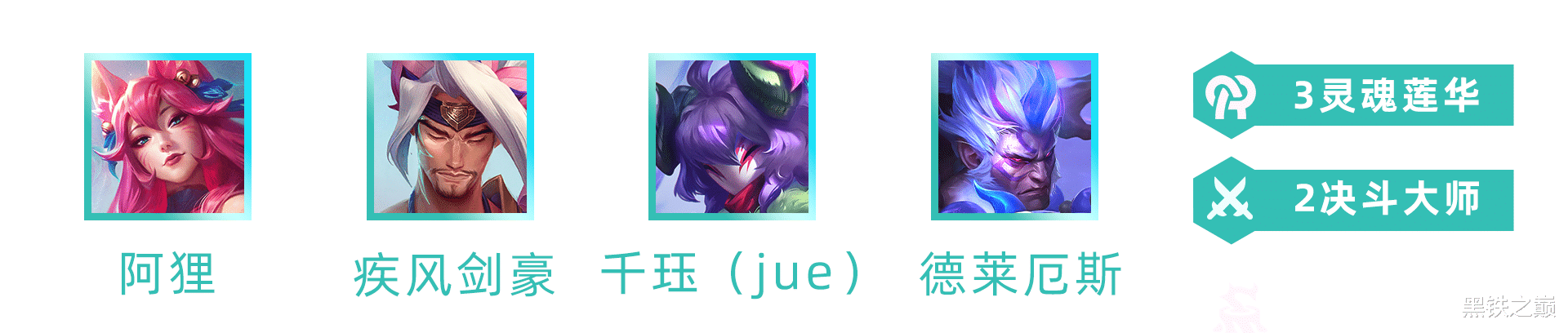 亚索、阿狸、千珏(Jué)+德莱厄斯或奇亚娜