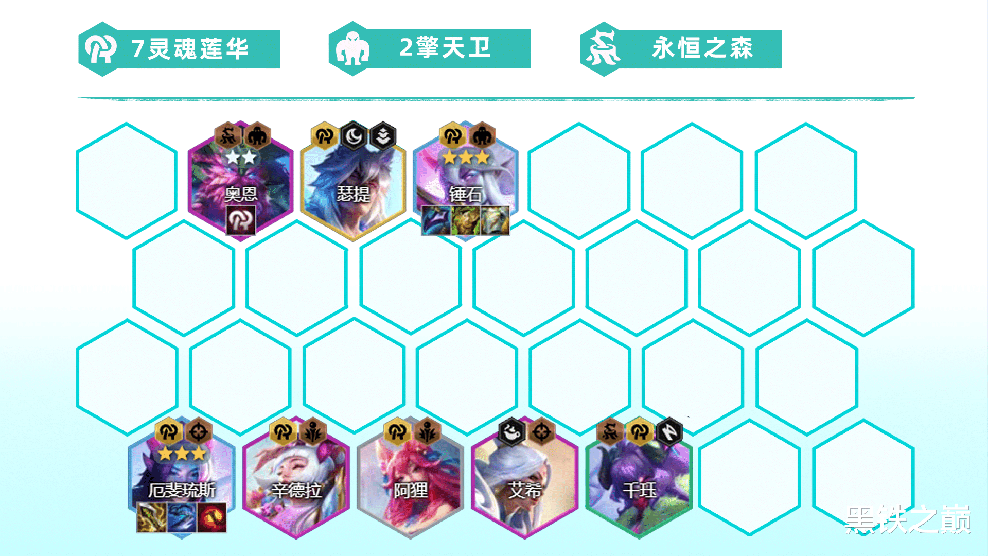 羁绊组成:7灵魂莲华、2擎天卫、2永恒之森、2法师、2狙神