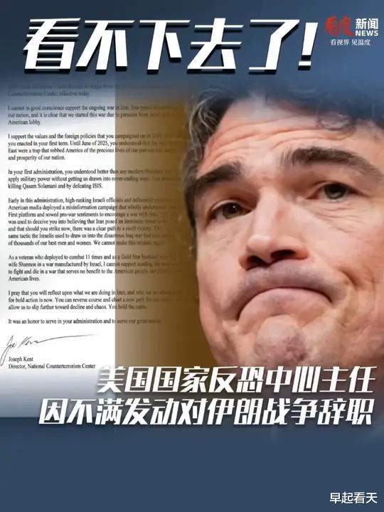 发动伊朗战争,美国国家反恐中心主任乔·肯特主动辞职。