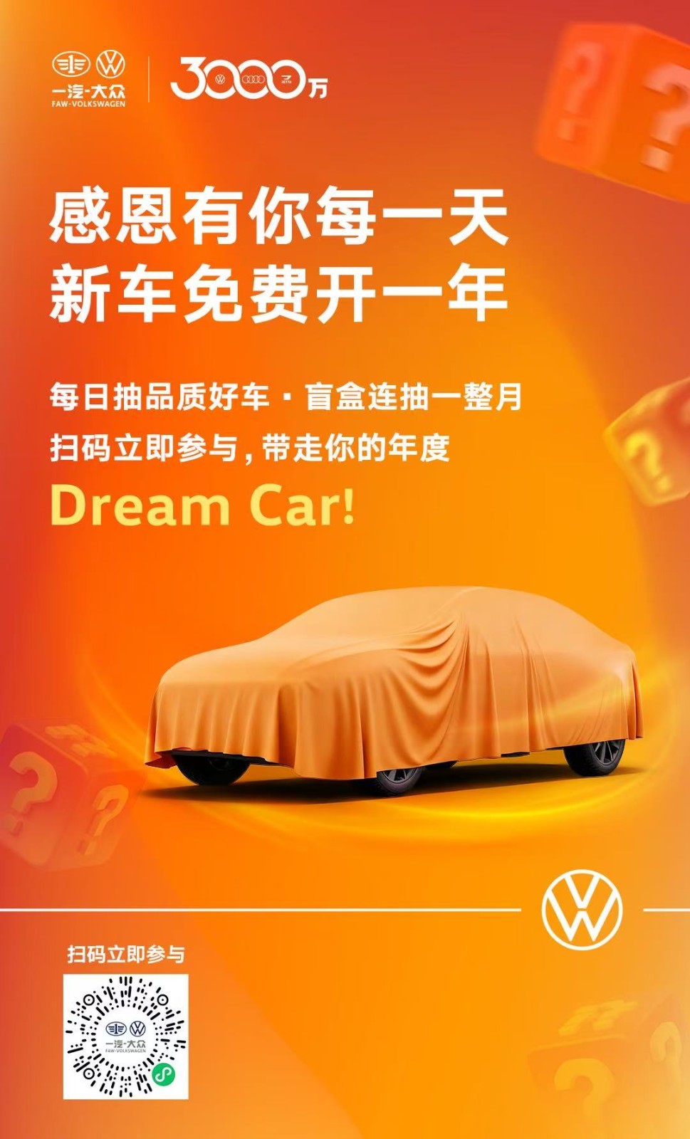 目前,一汽-大众“3000万用户感恩礼”仍在火热进行中。10月内,品牌将连续送出30台新车的一年使用权,并通过“盲盒连抽”形式增加参与趣味性。无论是新用户还是老车主,均可通过报名参与每日抽奖,赢取包括全新速腾L、揽境、揽巡等热门车型的使用权。这场持续一个月的感恩行动,不仅是一次促销活动,更是一汽-大众对3000万用户支持的深情告白。
