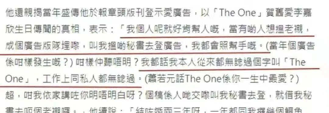 刘銮雄被问到一生挚爱的女人是不是李嘉欣时,刘銮雄一脸不屑的回应,当年在李嘉欣过生日时,为了宣传自家的商场,和她进行的商业活动而已。