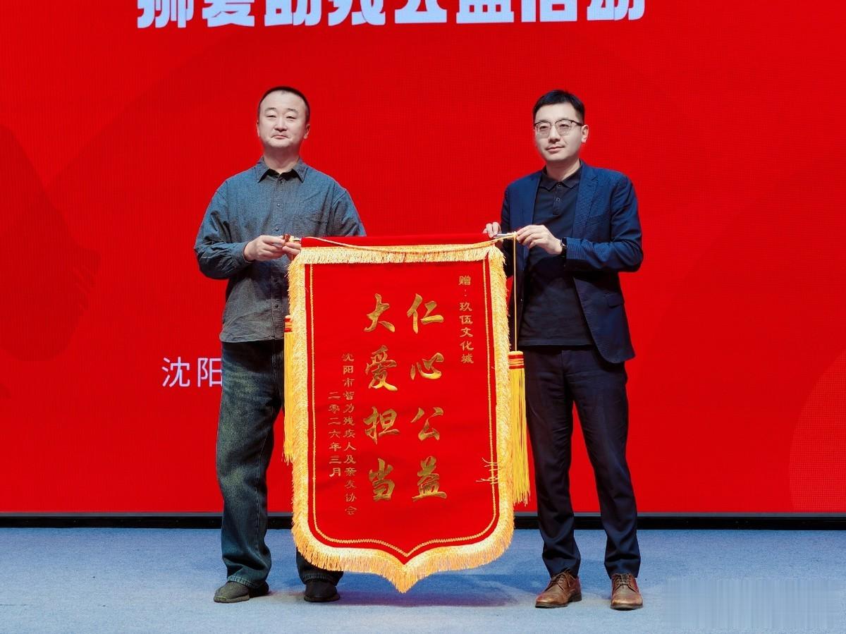 一面锦旗,承载满心感恩。玖伍文化城践行企业社会责任,心系残障群体,为本次活动精心筹备了爱心物资与暖心关怀。为致谢这份公益担当,沈阳市残联组织联络部二级调研员苏利代表全体残障朋友及家属,将凝聚着感恩与敬意的锦旗赠予玖伍文化城副总经理高爽,让这份政企同心暖残友的善意,在此刻被永久定格。