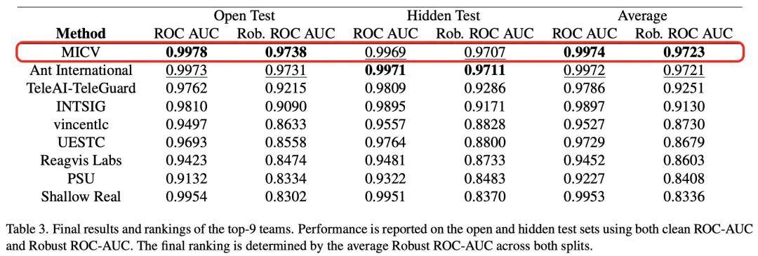 最近,计算机视觉领域的顶级会议 CVPR 2026 的 NTIRE 鲁棒性 AIGC 图像检测挑战赛( Robust AI-Generated Image Detection in the Wild Challenge )结果出炉。蚂蚁集团 AI 安全实验室的队伍 MICV 凭借在鲁棒性测试样本上 ROC AUC 达到了惊人的 0.9723,成功摘得「复杂真实场景鲁棒性样本测试」挑战赛的冠军。这场挑战赛吸引了全球 500 多支队伍的参与,是全球计算机视觉领域的三大顶级会议之一。