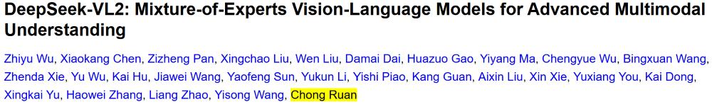 之后,阮翀亦以负责人的身份参与了《DeepSeek-VL2: Mixture-of-Experts Vision-Language Models for Advanced Multimodal Understanding》一文的研究工作。