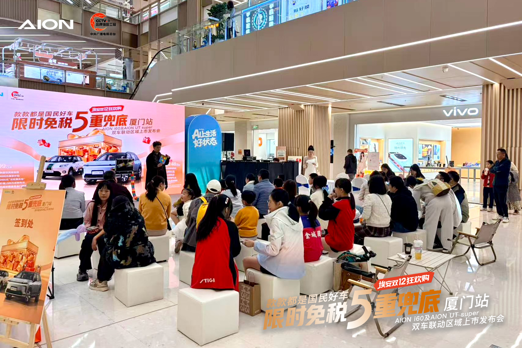 12月28日,厦门爱琴海购物中心人头攒动、氛围热烈,广汽埃安新能源汽车股份有限公司(简称“广汽埃安”)在此盛大举办AION i60&AION UT super双车联合上市会厦门站活动。