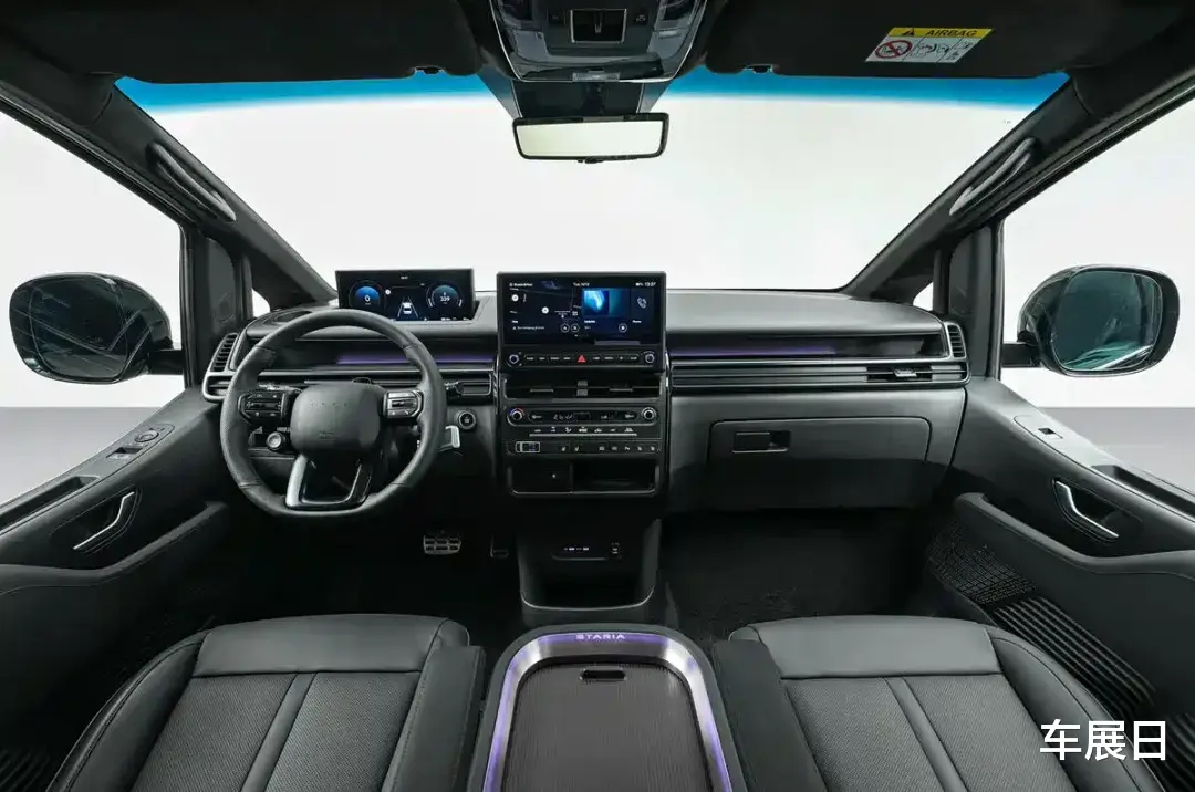 现代STARIA纯电版官图发布,并亮相2026布鲁塞尔车展。该车延续燃油版设计,车头取消前格栅,大倾角A柱,分体式车灯,车身侧面和后面有大尺寸车窗。车长5255mm,高度1990mm,轴距2375mm。