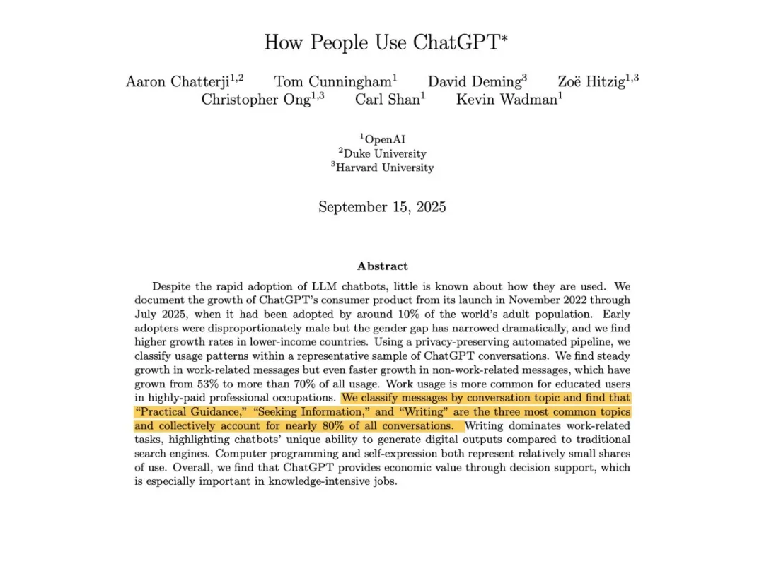 ChatGPT 是目前全球使用人数最多的 AI 应用,周活跃用户超过 8 亿人,但人们使用 ChatGPT 更多的场景并不是娱乐,而是提升效率。