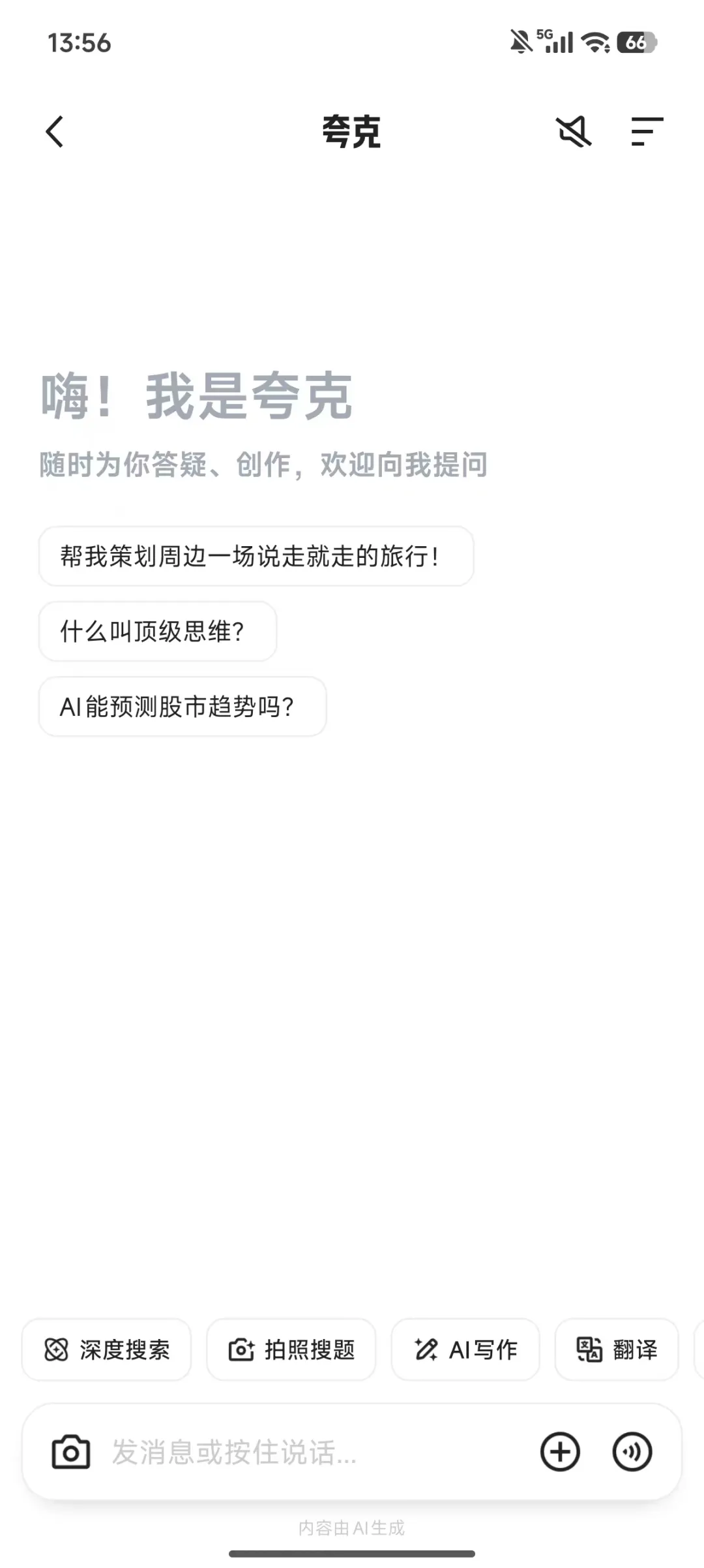这样高效集合的体验带来的不足是夸克并没有豆包那般更有陪伴感。夸克对话助手能解决许多问题,但这些功能基本上都围绕着工作、学习或者搜索场景进行,主打一个用完即走、简单高效。它虽然也有面向语音聊天场景的“打电话”功能,但它被隐藏得更深,不仔细寻找很难发现。