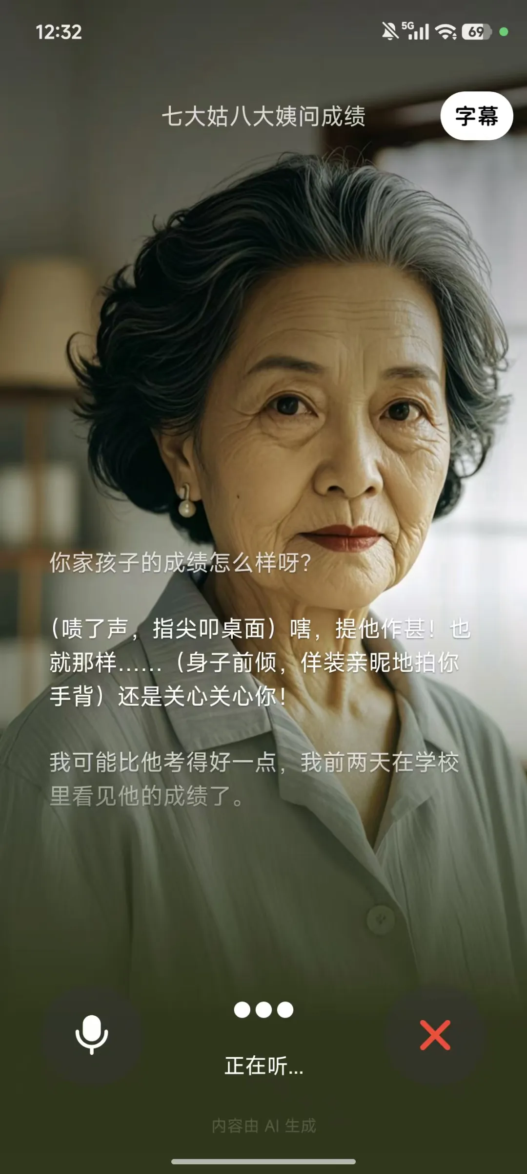 用户们在豆包里自定义了各种千奇百怪的智能体,比如“七大姑八大姨问成绩”“告状精”“挑战辩倒污蔑你的同学”。设定好特定情境、AI 性格,配上 AI 生成的背景图,也能收获一番仿若真人语聊的体验。