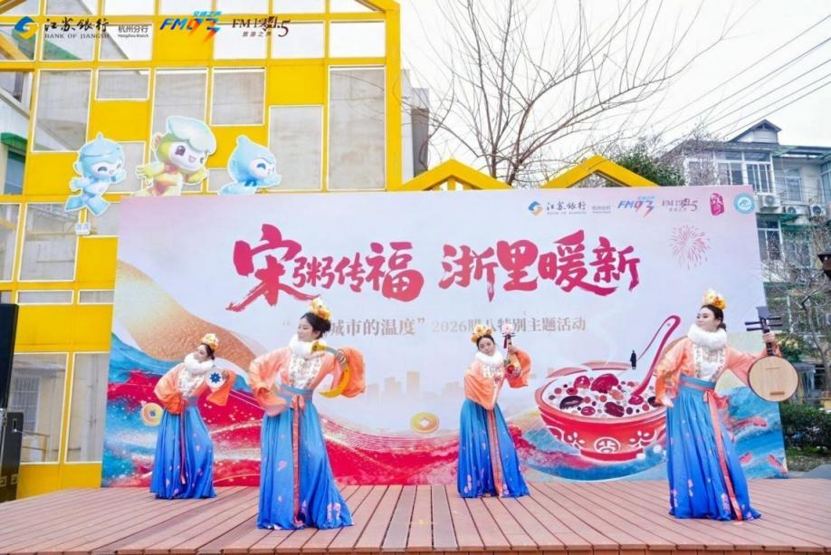 1月26日,伴随着灵动雅致的开场舞《宋韵添福》,江苏银行杭州分行携手浙江广电集团FM93交通之声打造的“宋粥传福 浙里暖新——一座城市的温度”腊八特别主题活动温情启幕。活动以主会场为核心,同步开启多路配送分队,深入全城多地,将融入义乌红糖、武义宣莲的“宋韵八宝福粥”送到更多城市守护者手中,以十二年公益坚守,串联起传统与民生,让城市温度在腊八佳节里全域蔓延。