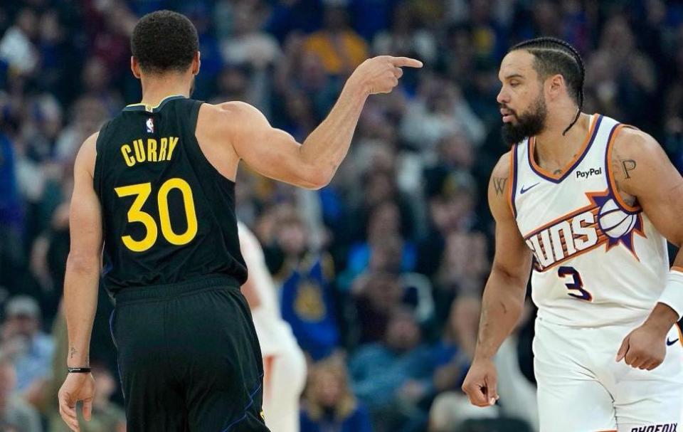 首节比赛开始,太阳率先拿到球权,吉莱斯皮急停中距离稳稳命中,打进本场比赛首个进球;库里单枪匹马杀进篮下,轻松挑篮也为勇士开张,布克标志性的干拔跳投再进一球,追梦格林空切篮下也稳稳命中;威廉姆斯蓄力腾空,重锤暴扣得手,库里正面干拔三分球一箭穿心,巴特勒灵动突破后抛投得手;奥尼尔超远三分球也空心打进,狄龙紧接着内外两开花连得5分,布克的追身三分同样也有。