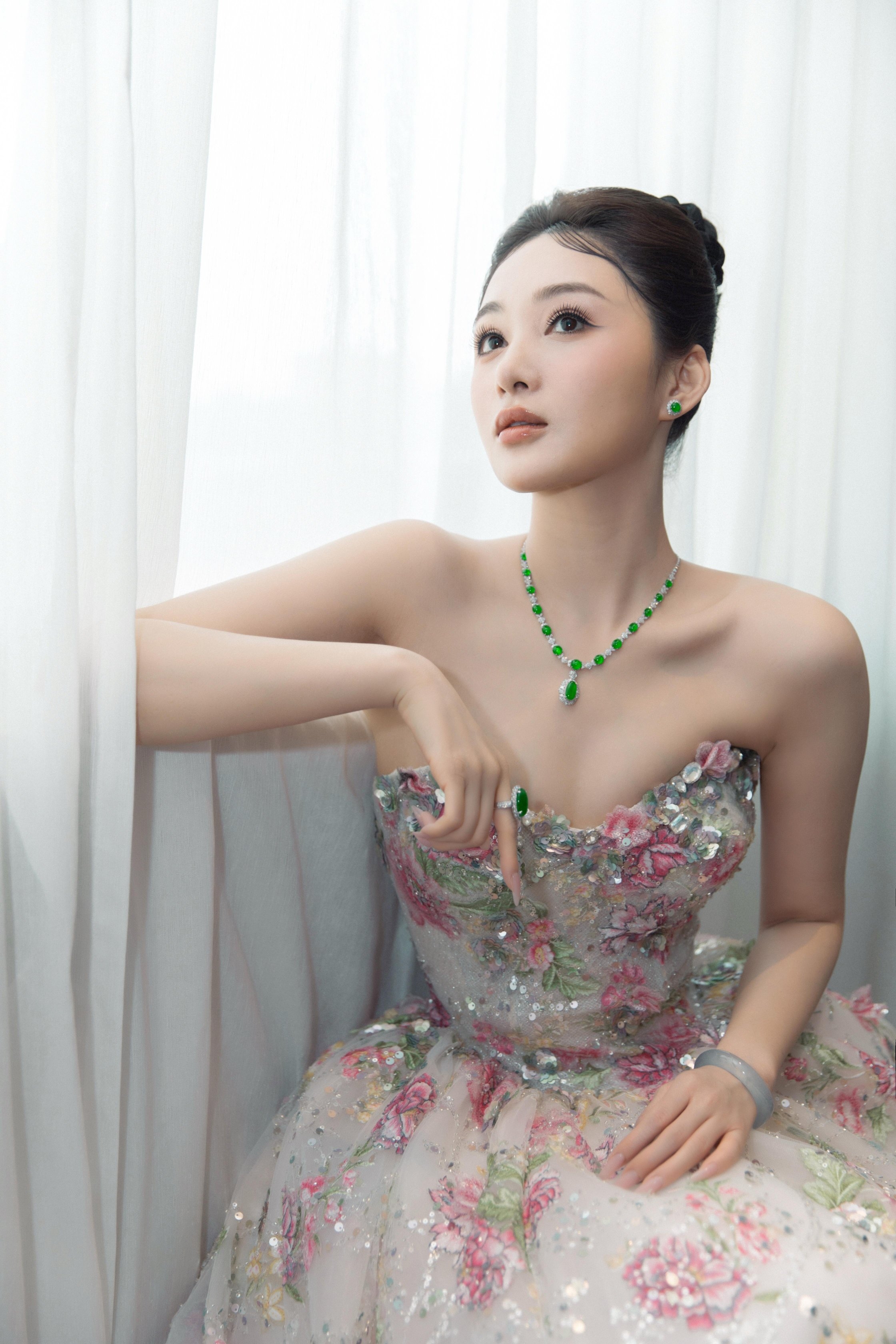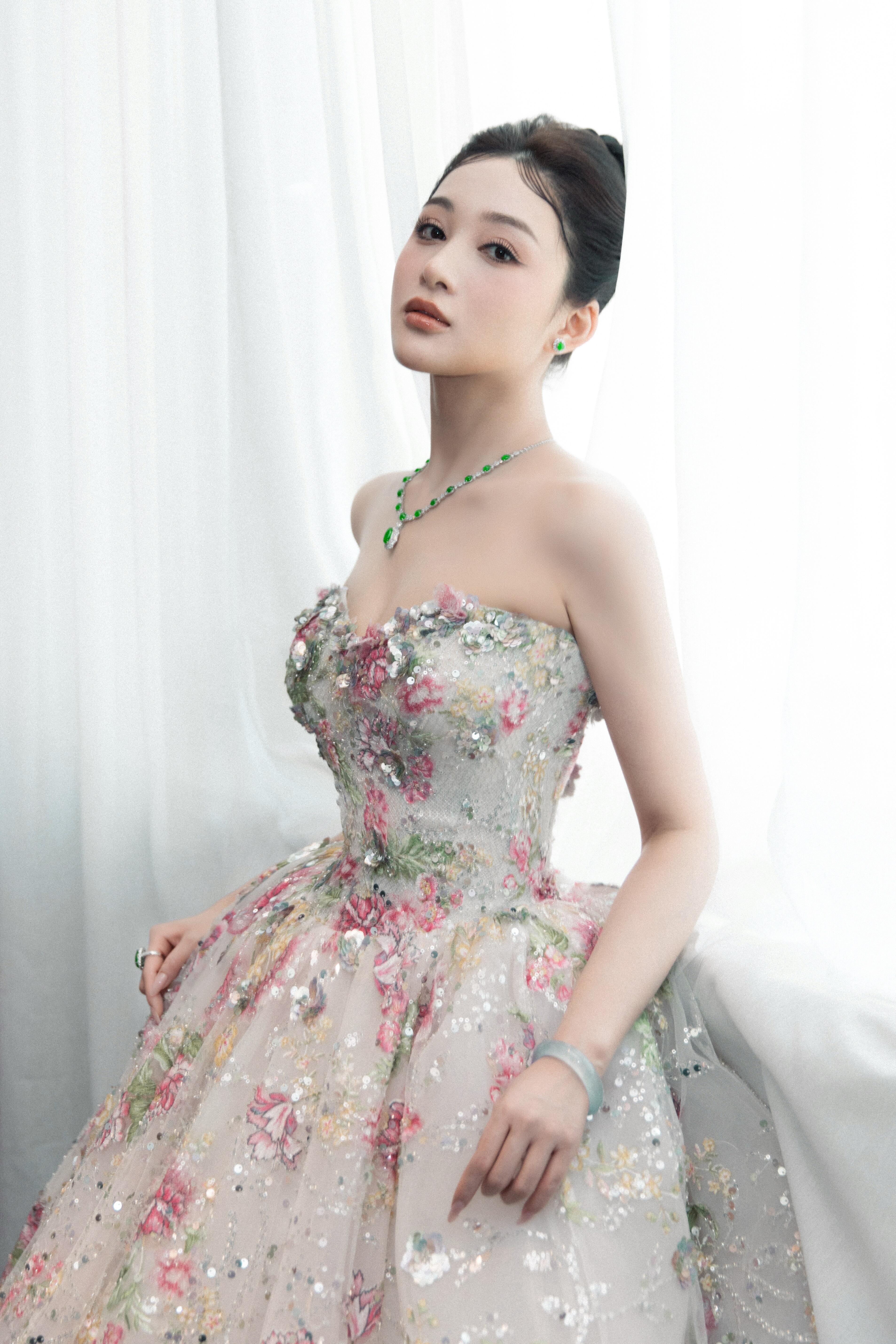 演员孙嘉璐抹胸礼服裙写真,纯欲撩人