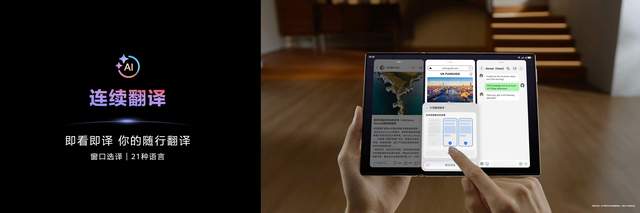 出国旅游无需担心语言障碍,小艺连续翻译提供全场景翻译支持。在使用海外打车、购票等App时,长按底部导航条打开连续翻译,实现实时转译。同时凭借折叠屏的优势,可实现一屏翻译英文页面(如购票网站),一屏规划行程,另一屏同步查询资料,边看边译边决策,无需反复切换耽误时间。