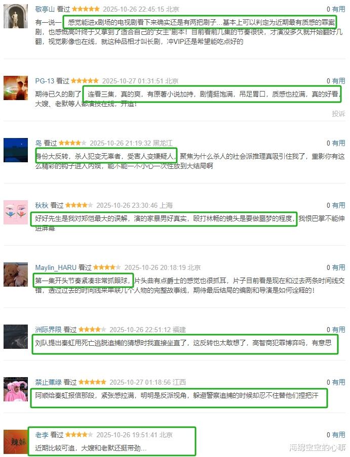 ▶总结:不得不说,今年国产悬疑领域给了观众不少惊喜,佳作频出。这部剧无论是剧情还是节奏都做得不错,希望后续不崩!