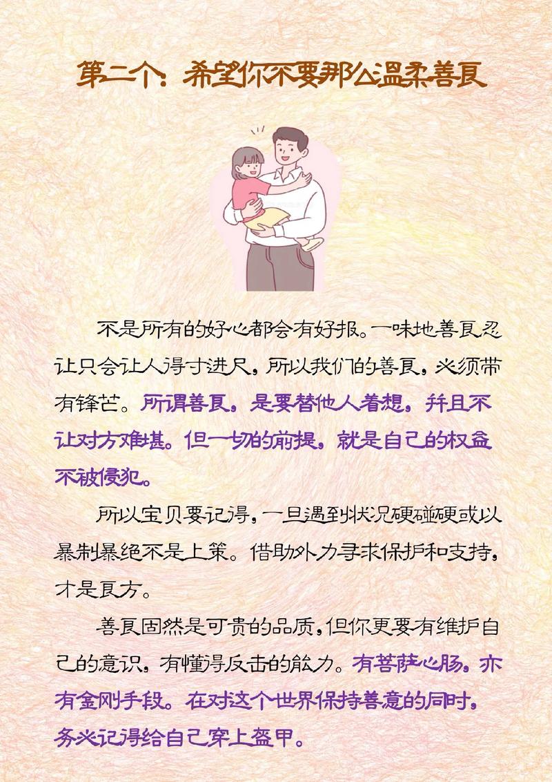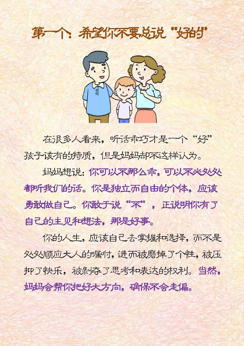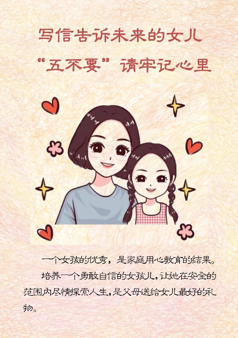 宝贝,这“五不要”,妈妈希望你永远牢记心里。未来的路,妈妈不能一直陪在你身边,但会永远是你最坚实的后盾。愿你一生平安喜乐,眼里有光,心中有爱,不慌不忙,勇敢做自己,活成自己最喜欢的模样。