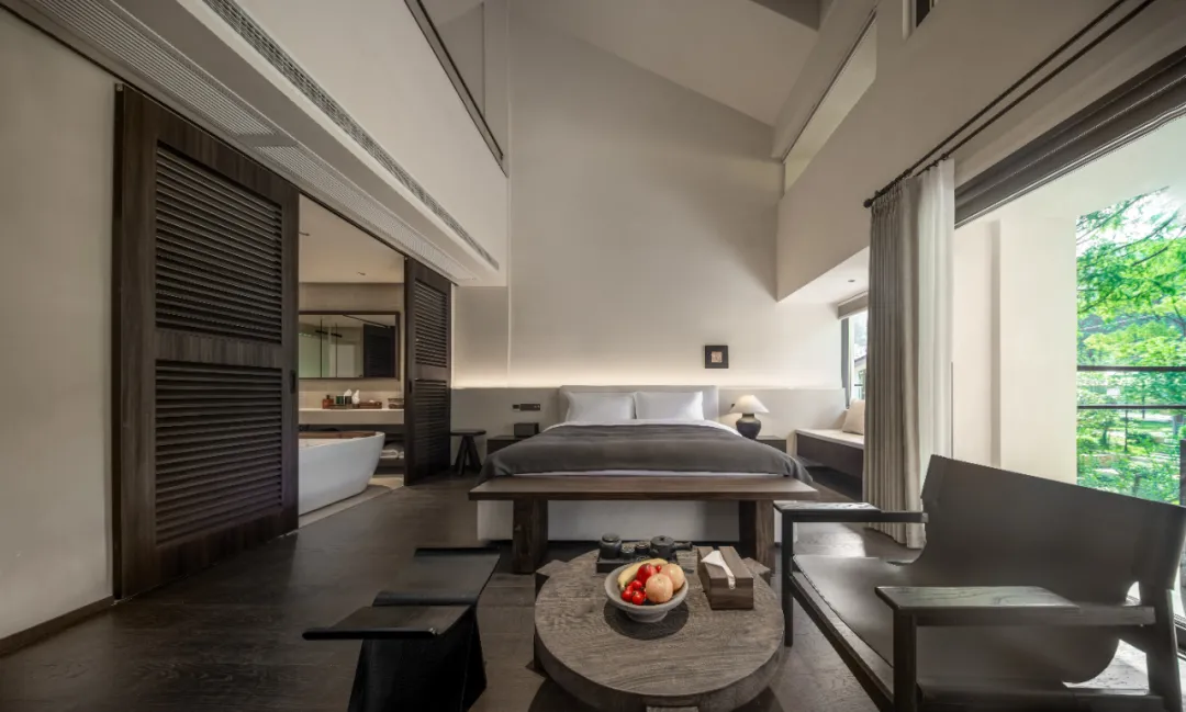 无它心舍·良渚店只做了3种房型,共12个房间都带有浴缸,每一客房都有不一样的窗景,让你结结实实跌入森林怀抱。