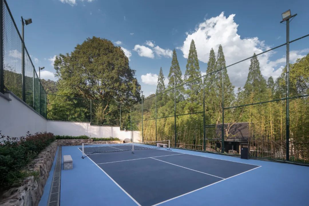 无它心舍·良渚店还提供丰富的在地体验活动。玉琮拓印、良渚冰箱贴制作、茶巾蓝染,在松弛的度假空间里感受传统文化的魅力。让人惊讶的是,仅12间的客房,竟然还还配套了时下最时髦的匹克球场,能够让客人感受轻量级运动的快乐。