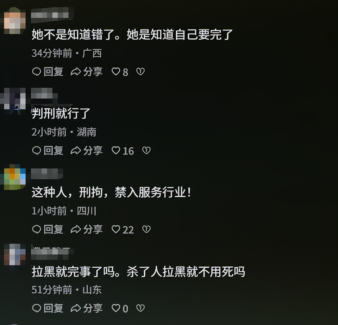 还有的网友说,她不是知道错了,她是知道自己要完了。