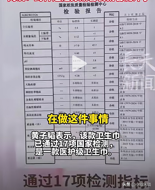 他强调自己工厂所生产的卫生巾已通过 17 项国家检测,达到医护级标准。