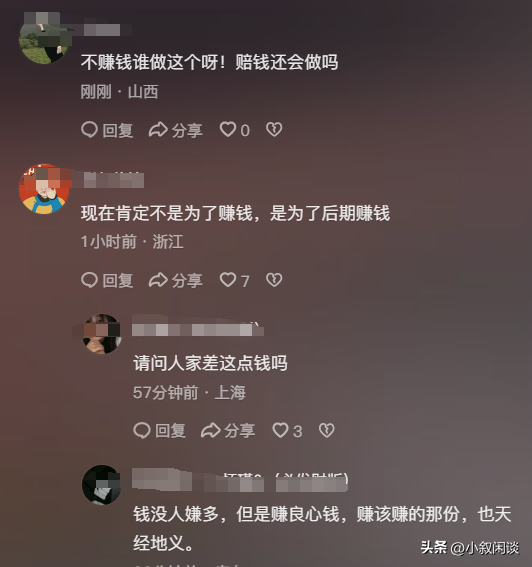 也有网友质疑他所说“初心不是为了赚钱,而是做这个事。”