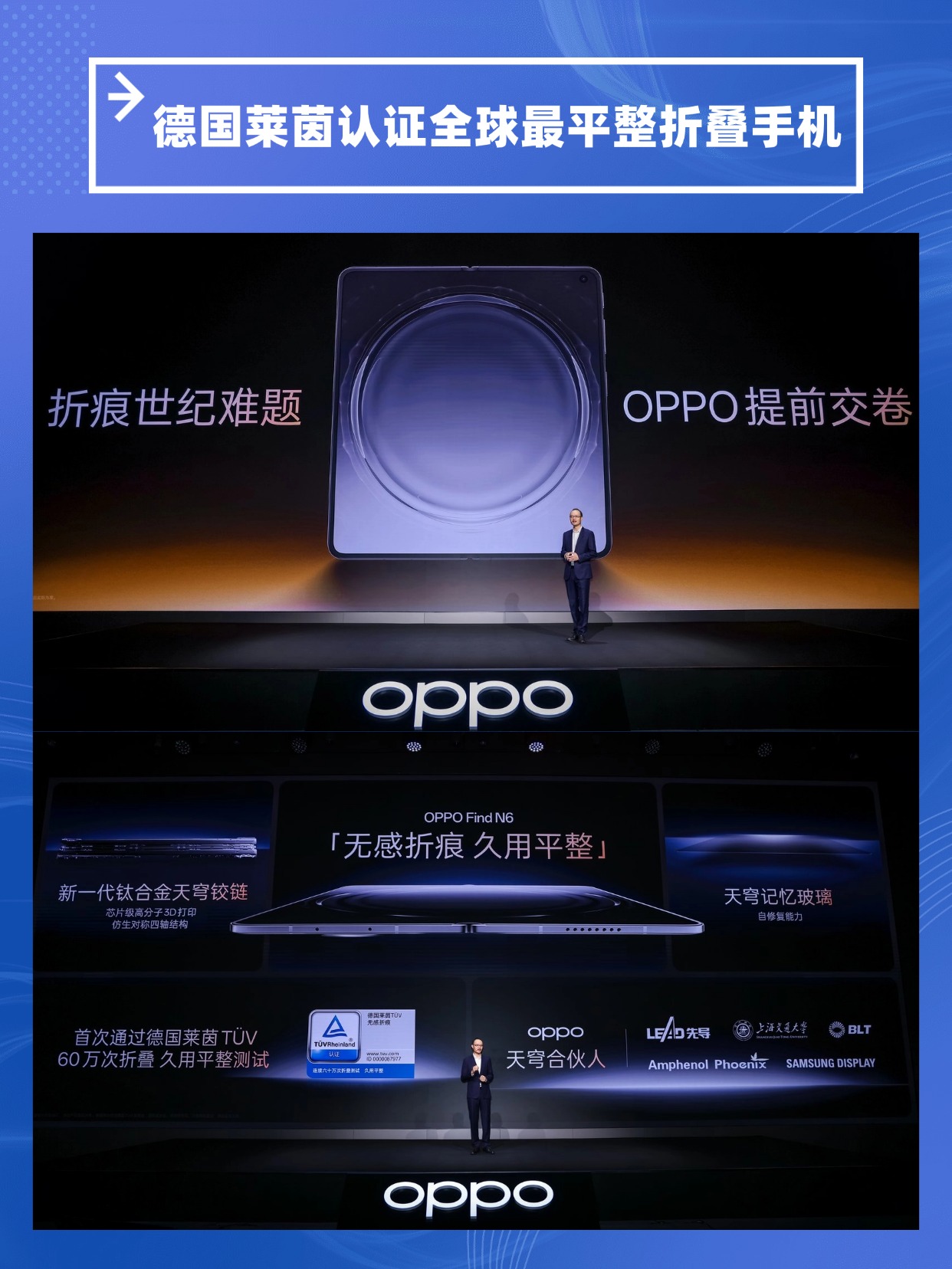 先说硬核的:困扰行业8年的折痕难题,被OPPO联合四大供应链开发的两大黑科技攻克了!