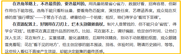 其实林永健文章中还有一句话说得特别好,他指出:“在选角策略上,不选最贵的,要选最对的。”
