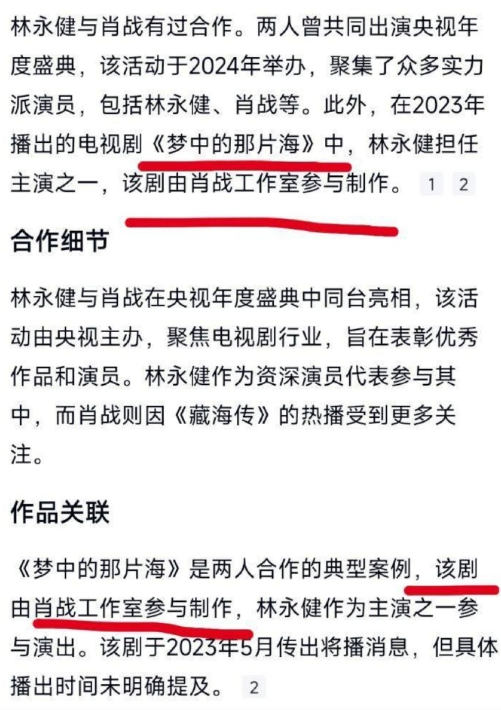 而且林永健确实跟肖战有过合作,两人一起拍摄了《梦中的那片海》,这部年代剧还是由肖战工作室参与制作。