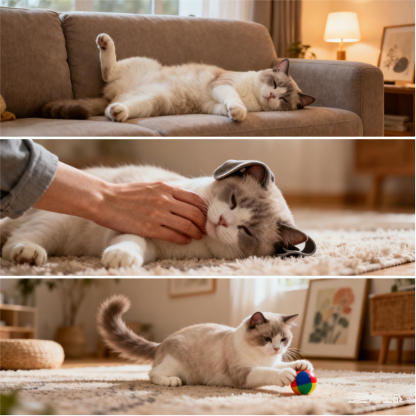 它们对运动需求较低,成年猫每日 1 小时左右的互动即可满足需求,喜欢的运动方式多为轻松的追逐游戏、逗猫棒挥舞等,极少主动攀爬高处,更愿意在沙发或床上“葛优躺”。这种习性使其极其适应公寓环境,即使小户型家庭也能轻松饲养,无需配备复杂的运动设施,只需偶尔用玩具互动即可。