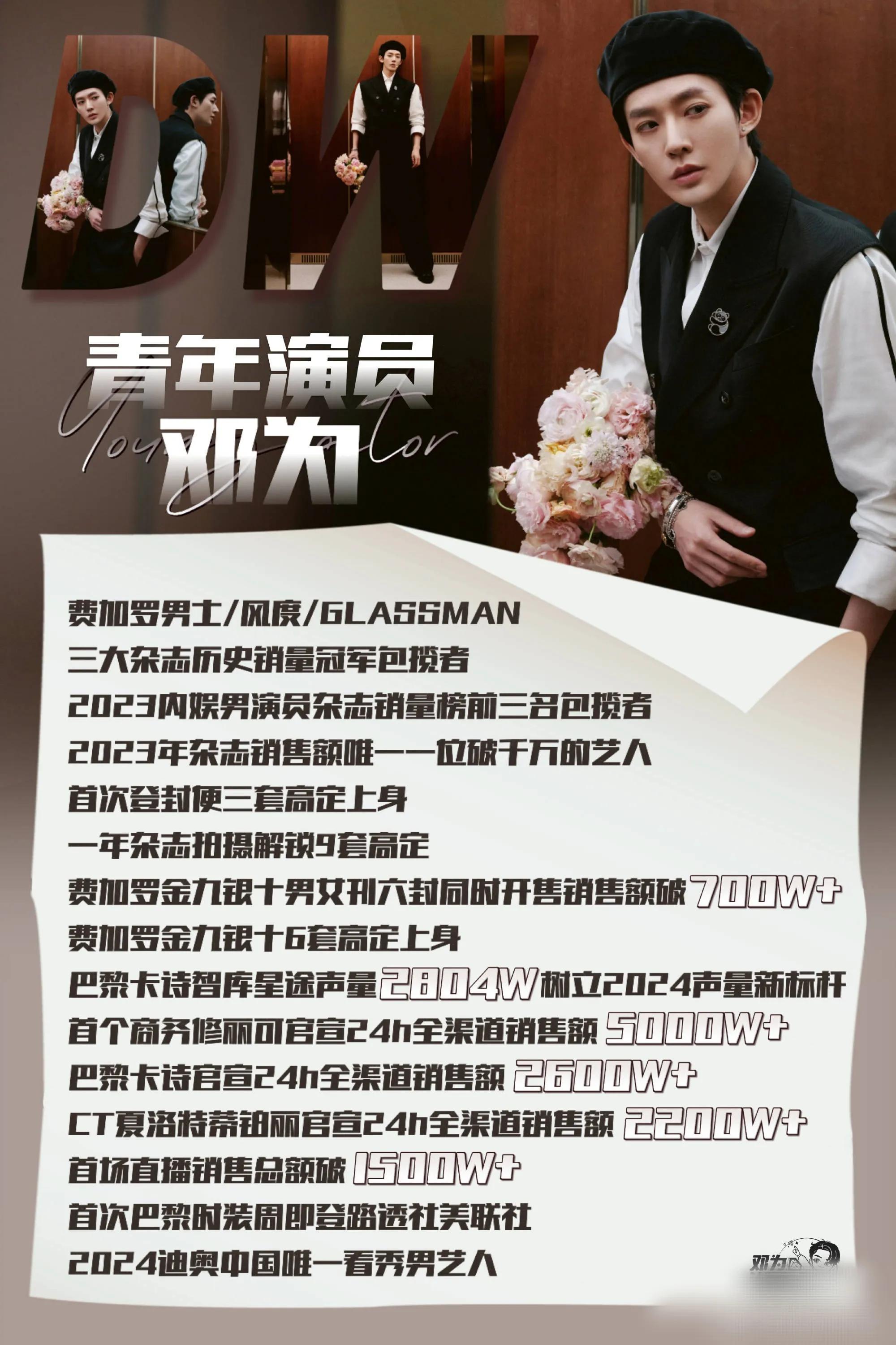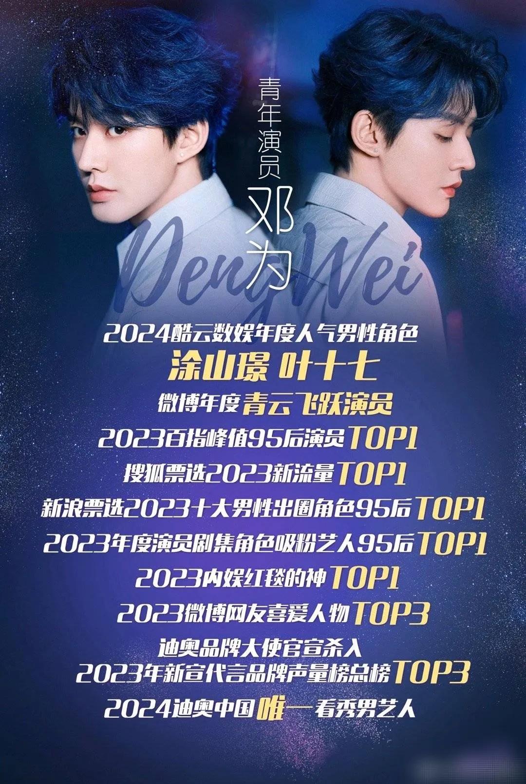 邓为与粉丝“钻石”们之间的情感深厚。他和粉丝像知心好友,一个微笑、一句问候,都能在粉丝心中掀起波澜。他真诚亲切,像邻家大哥哥,粉丝因他的颜值、才华,更因他的珍视与关爱而坚定支持他。这种双向的爱,让邓为在粉丝心中有着独特地位,粉丝也期待他在重要场合的每一次亮相。