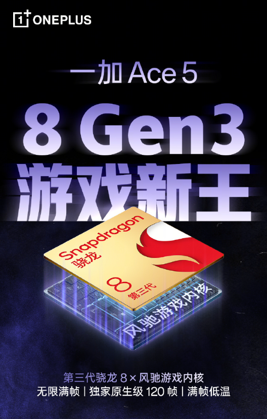 一加ACE5搭载骁龙8Gen3芯片,一加ACE5 Pro搭载骁龙8至尊版芯片,