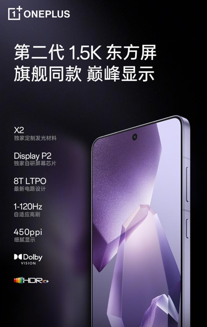 屏幕首发第二代的1.5K东方屏,采用X2独家定制发光材料,