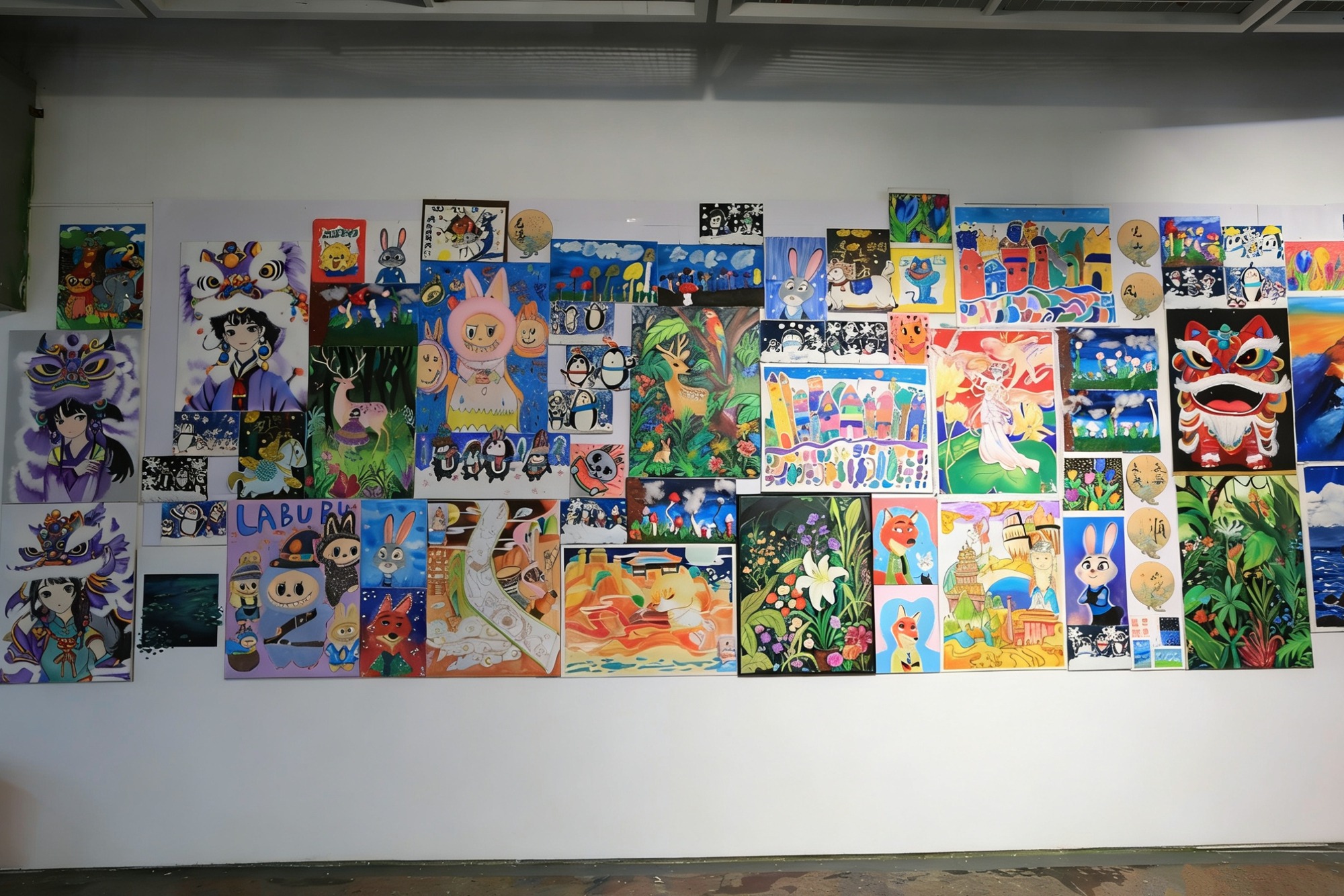 如果说博物馆里是满满的硬核工业风,美术馆里则充满文艺范儿。馆内正在进行儿童绘画展,出自小朋友之手的创意画色彩斑斓,充满想象,孩子的眼睛里,世界就像一个巨大的游乐场,总是天真有趣的。