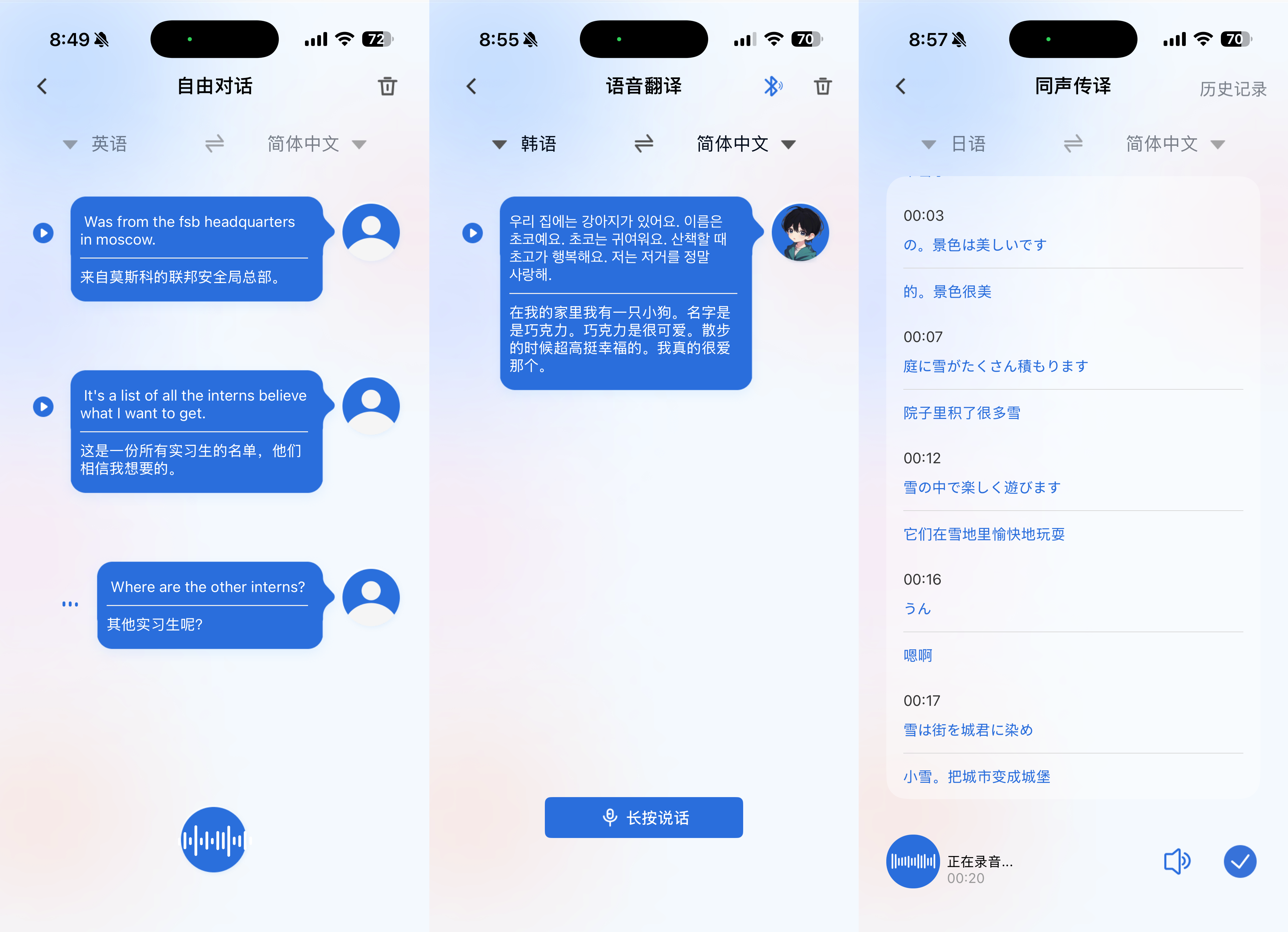 先重点说说最核心的翻译功能,毕竟这是它区别于众多竞品的关键亮点。南卡ClipSuper2搭载了讯飞与DeepSeek双AI引擎,长按触控区就能快速激活翻译模式,无需单独打开APP,操作逻辑简单直接。我专门做了实测:用英语、日语、法语与同事模拟日常对话,它的实时翻译响应几乎没有延迟,翻译准确率很高,像“请推荐附近的特色餐厅”“这个项目需要下周完成”这类日常及办公场景的表达,都能精准转化,甚至连一些略带口语化的表述也能准确识别。