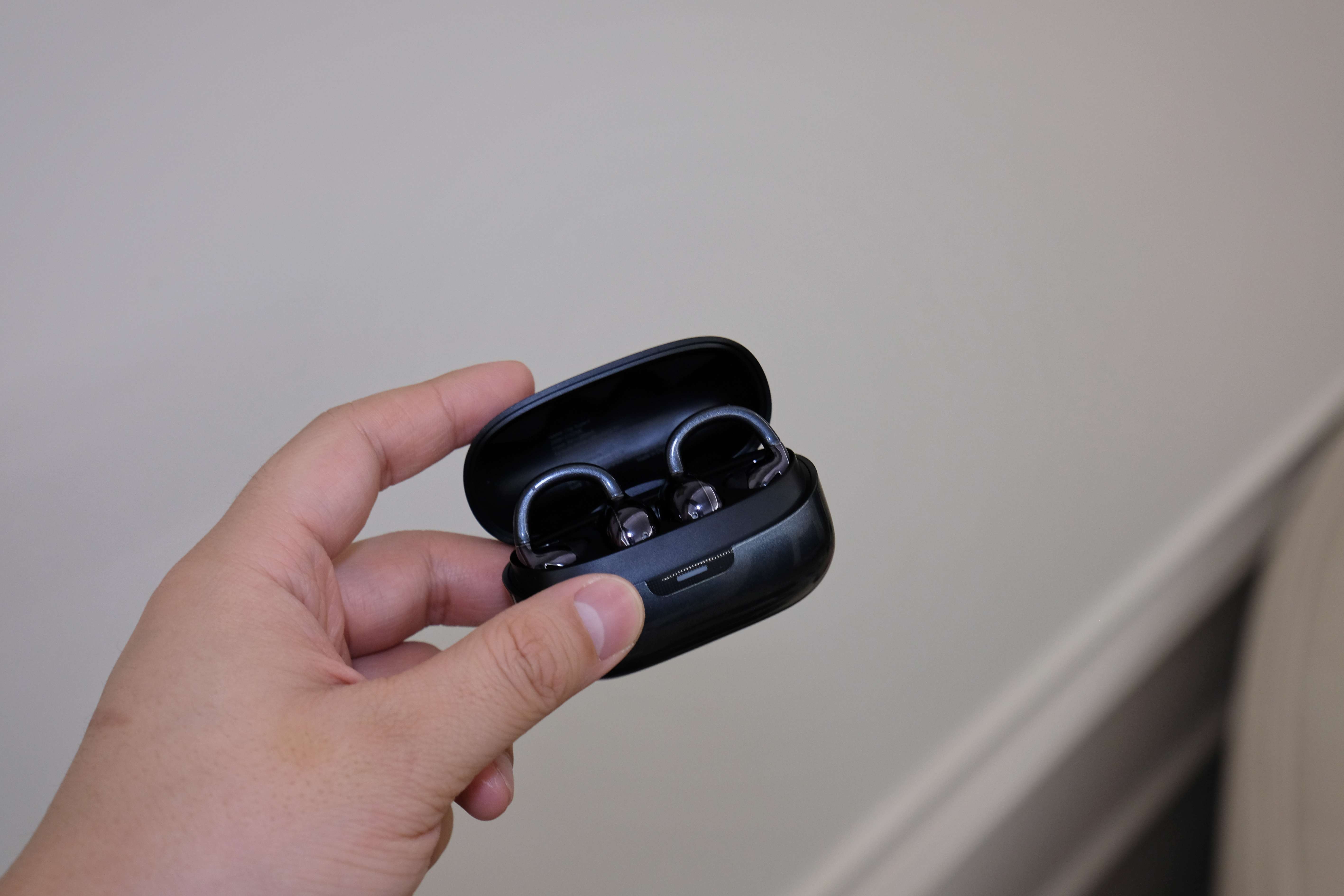 最贴心的是接触耳廓的部位加装了LevAir零压气囊,柔软有弹性,能均匀分散压力。之前戴某些耳夹式耳机,半小时就会觉得耳廓酸胀,甚至勒出红印,但这款我连续戴了8小时办公,中途开会、写方案全程没摘,耳朵也没有不适感,偶尔低头捡东西、快速转头,耳机也不会滑落。运动场景下表现也很出色,晨跑时不管是慢跑还是冲刺,耳机都牢牢固定在耳边,加上IPX5级防水,出汗再多也不用担心损坏,雨天通勤也能安心使用。