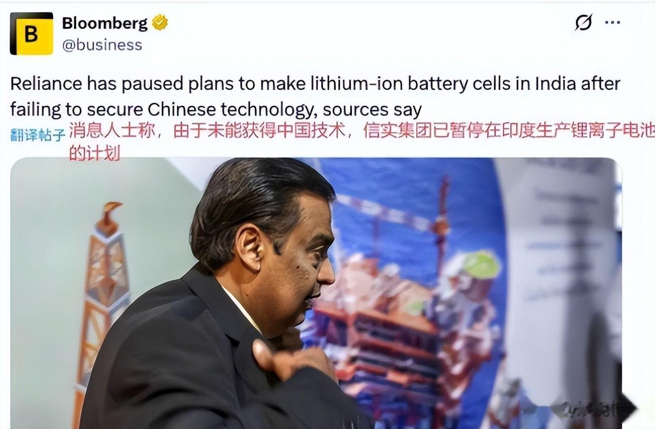 观察者网1月21日的报道给出了最新进展,中国出台关键技术转让限制措施后,印度规模最大、影响力最广的信实工业有限公司,已被迫暂停本土锂电池生产计划。