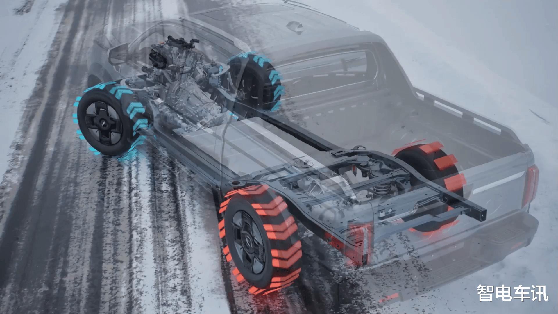 农副商贸人的生意,往往需要跨城运输。跑高速时,货箱里装着几百斤货物,动力必须够猛。悍途PHEV在60-100km/h的中段加速能力相当出色,电机和发动机协同发力,超车动作干脆利落,高速巡航时还能保电运行。馈电状态下依然能打,2.0TGDI发动机单独输出160kW功率、370N·m扭矩,超车爬坡依然有力。