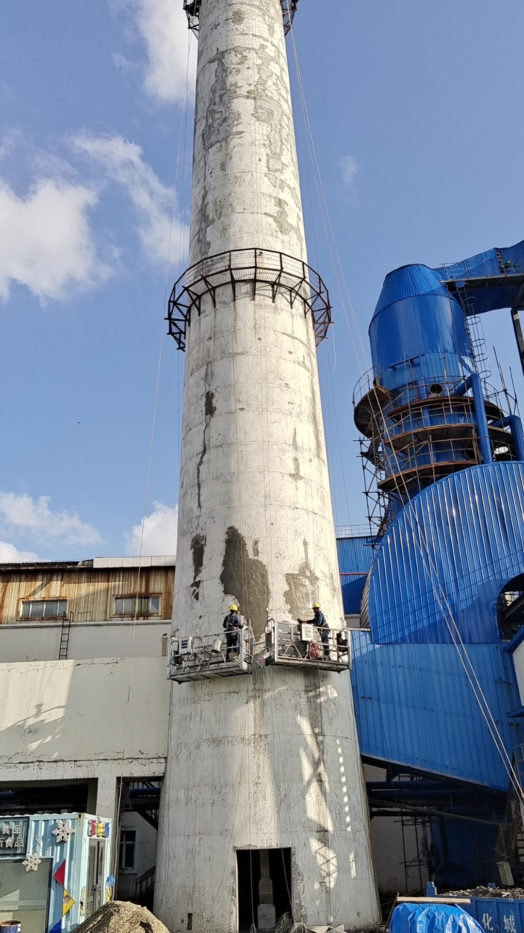 1.高空砌筑精度控制:烟囱高度达 45m,筒身随高度逐步收窄(顶部直径 2.2m),高空作业时提升机稳定性受风力影响大,砌体垂直度与圆度难把控,易出现偏差累积。