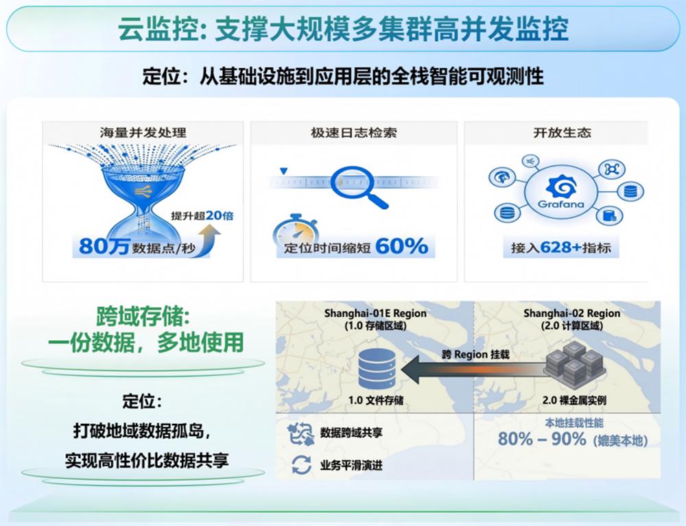 同时,通过跨地域数据挂载技术,实现“一份数据,多地使用”,在保证接近本地性能的前提下,打破数据孤岛。这不仅降低了数据流转成本,也为跨区域业务部署提供了基础支撑。