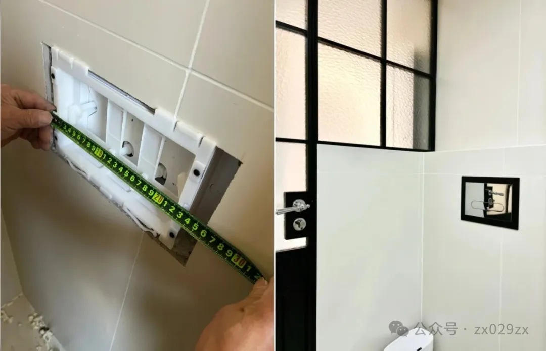 瓷砖开孔远远大于马桶下水面板,定制黑色亚克力板,十几元轻松解决,而且颜色与家里金属门还能呼应协调。