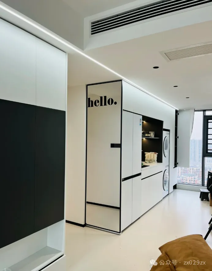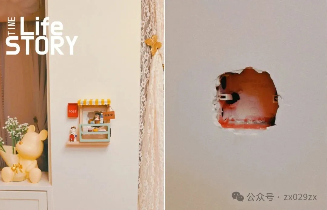 前期想好要预留一个洗袜子机,入住以后感觉没有必要,结果墙面就留个难看的洞,太难看了,也很难堵。网购一个小木门遮挡一下,而且还能起到装饰作用。