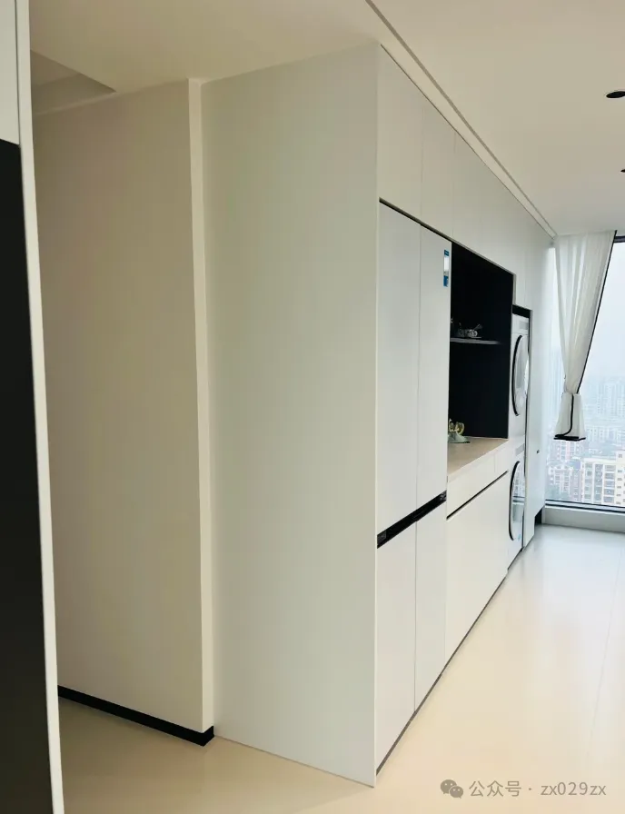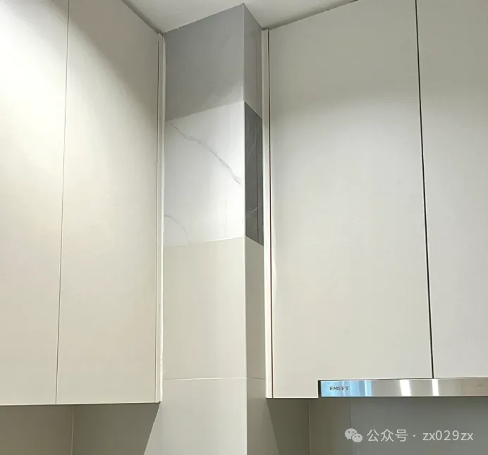 没有做侧面柜,为了好收口凹进去几公分,结果忽视了颜色的问题,加上高低不平就更加怪异。