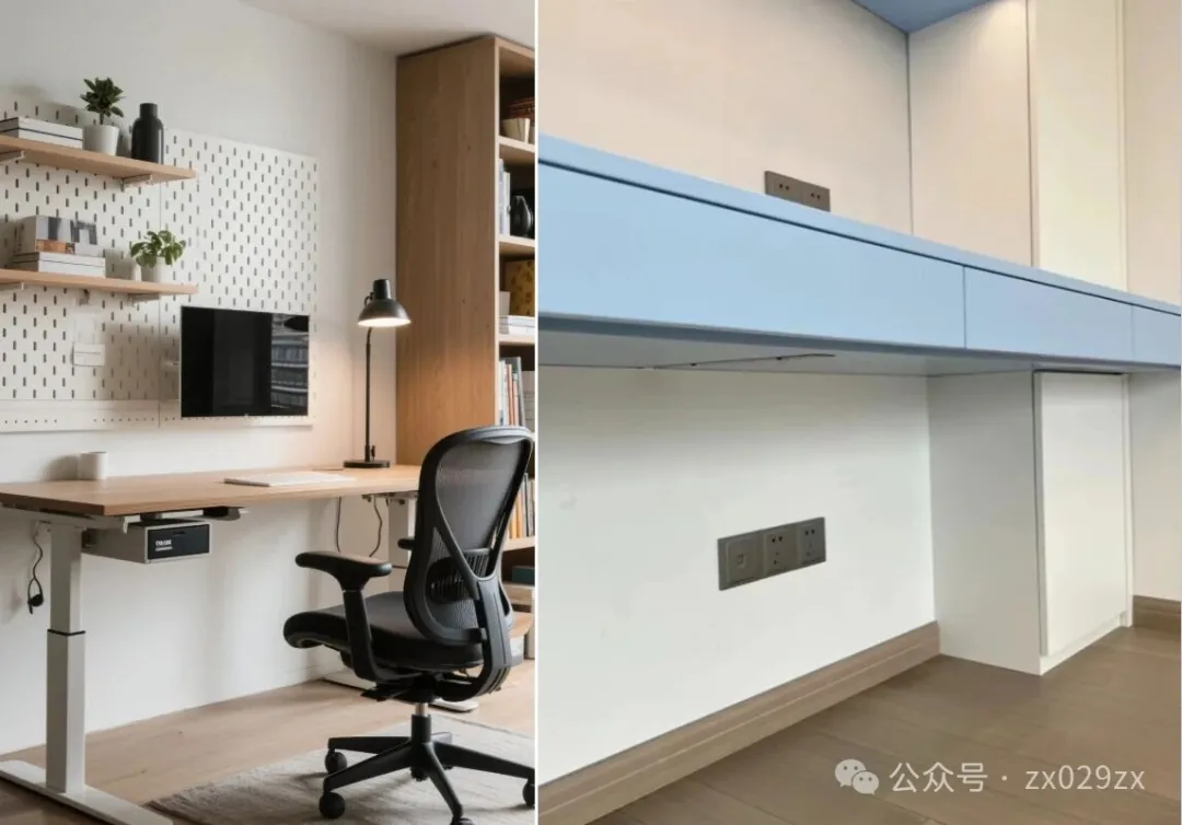 定制书桌或者成品书桌,入住才发现没有踢脚板的话,墙面容易踢脏。