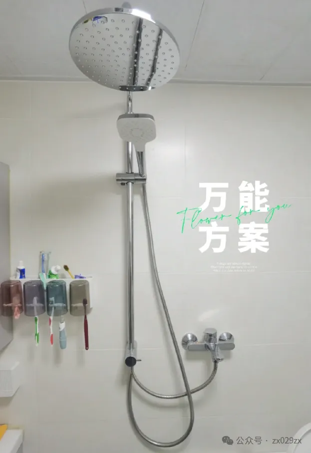 购买分体式花洒,也是可以的,混水阀位置固定不变,花洒可以高低左右,根据吊顶高度满足安装。