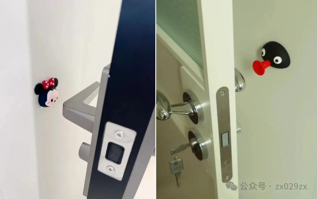 还有各种卡通的防撞设计,直接沾到瓷砖上,完美防止金属门磕碰瓷砖,代替门吸使用。