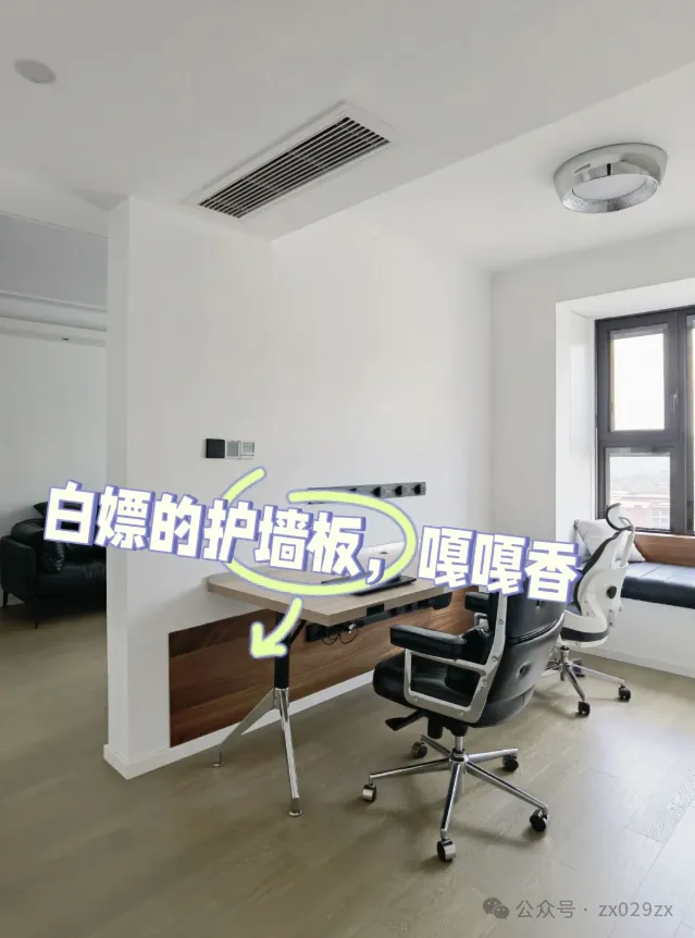 家里剩余的板子废物利用,刚好贴在书桌下方,防止踢脏墙面。