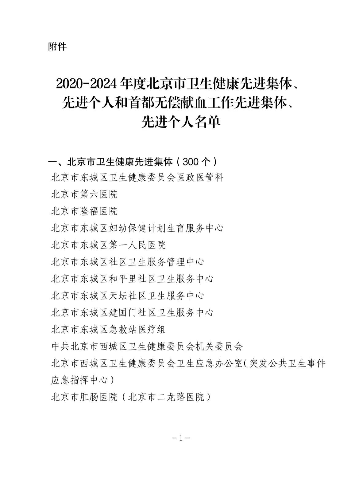 *附表:《2020-2024 年度北京市卫生健康先进集体、先进个人和首都无偿献血工作先进集体、先进个人名单》