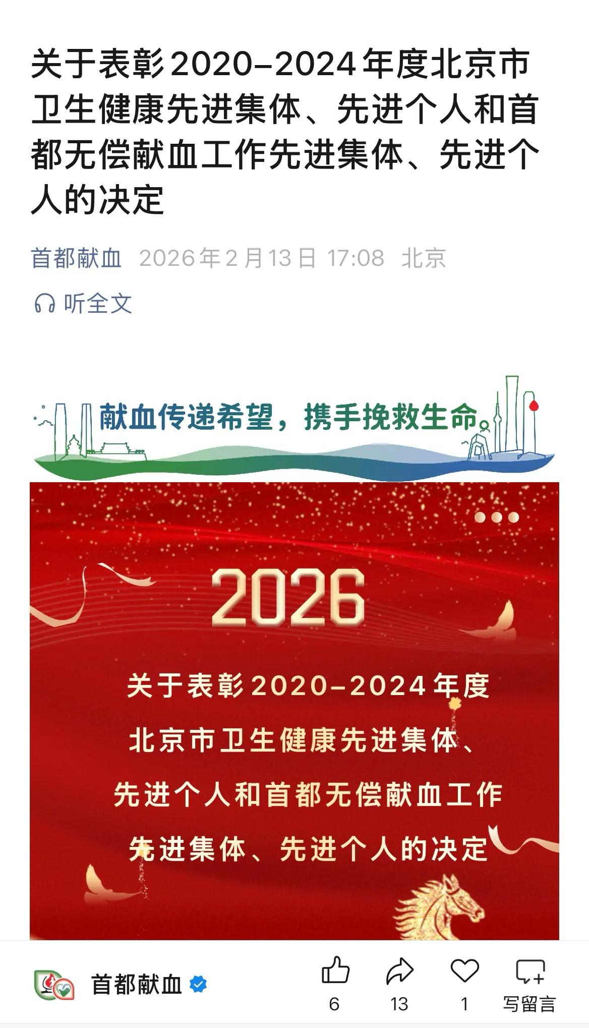 顺祝张行之(航通)董事长被评为“首都献血先进个人”荣誉称号!倡议所有爱心的人士都加入无偿献血队伍里来吧:献出献血!挽救生命!