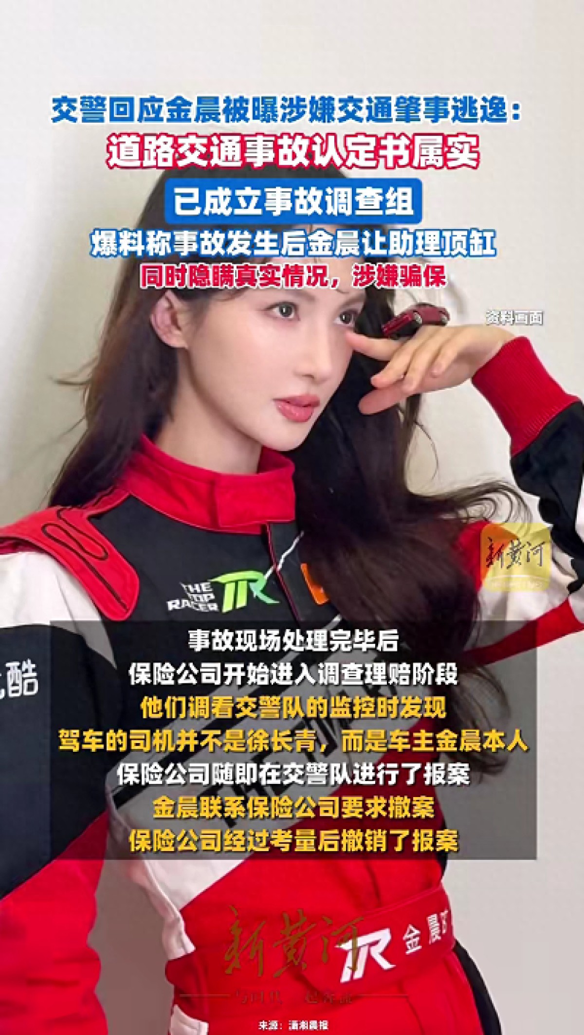此前有爆料称,2025年3月16日,浙江省绍兴市柯桥区发生一起交通事故,事故发生后,驾车的金晨让自己的助理顶包,她本人则在第一时间逃离事故现场。